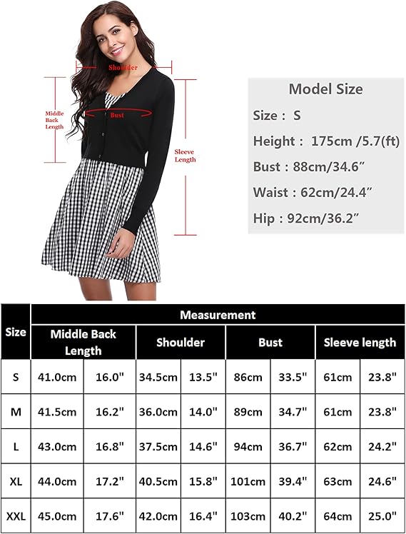 • The open front cardigan has long sleeves, a V-neck, a button placket and a short design. Modern, classic fashion style