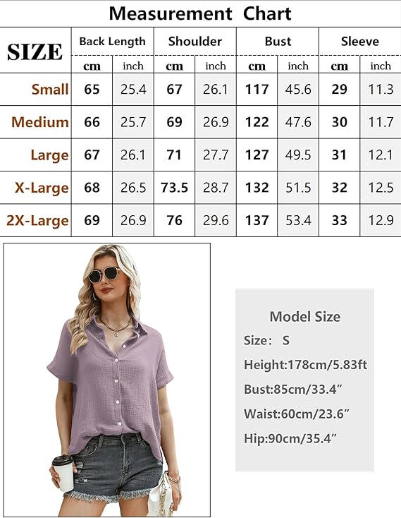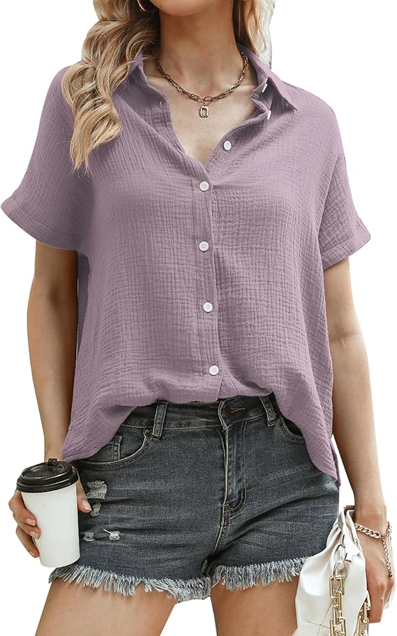 - Women’s short-sleeved blouse: made of 100% cotton, very skin-friendly, comfortable, breathable and loose cut. Ideal for spring and summer