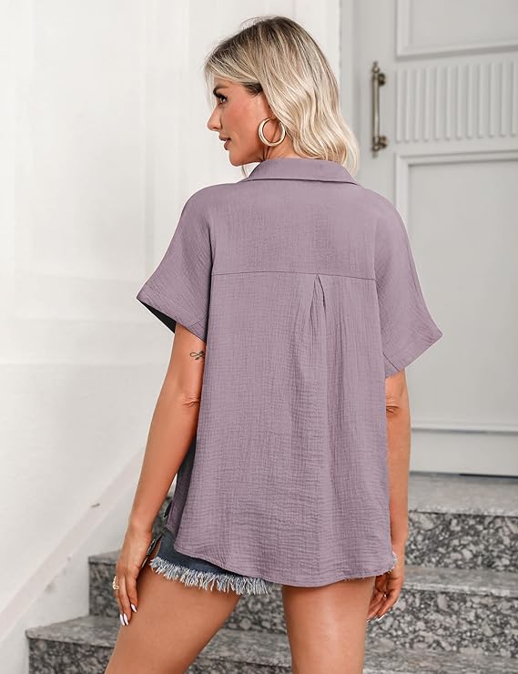 - Elegant design: blouse shirt women’s design V-neck, plain, short sleeve, elegancity blouse, button-down shirts, loose fit and lapels, basic shirts are a must-have in the women’s and girls’ wardrobe